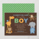 Green Brown Jungle Animals Baby Boy Shower Invitation