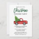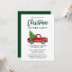 Brush Script Watercolor Vintage Red Truck with Christmas Tree - Christmas Dinner Party Invitation - Green Script, Green Back