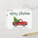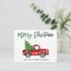 Brush Script Watercolor Vintage Red Truck with Christmas Tree - Merry Christmas Postcard