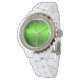 Discover timeless elegance with this rhinestone white enamel watch for women, adorned with a chic green brushed metal detail and sparkling glitter accents. The watch features a personalised monogram, where an initial gracefully strikes through the name, adding a sophisticated touch. This piece effortlessly combines functionality with style, making it a stunning accessory for any occasion.
