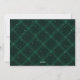 Elegant holiday card featuring "Merry Christmas" displayed in a white calligraphy script on a painted green plaid background. Personalize the front of the rustic non-photo holiday card by adding your name and the year. The back of the card features a matching plaid background with subtle white snow dots.