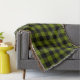 A quality printed throw has its advantages. This is a much finer weave throw than its loopier cousins, and though lighter, it is worth the investment for custom room accessorizing. The back is much prettier than the typical brown, and the fringe on the long sides very vivid, the selvage nicely done. Before photographing, I washed the throw in cold water, delicate, with a thicker woven throw the same size. On tumble dry low, this throw was dry in half the time as the other. This is a very practical quality if you use throws for furniture covers or to wrap up in frequently. The sleekness of the fabric makes it a great layer for accenting or protecting without the feeling of sitting on too much stuff. Perfect for napping or when you feel a light chill coming on. The color printing is beautiful and on this fabric, matched the design and color of my Photoshop image. This is an advantage for blending room fabrics and colors. The fringe on the short sides prints the colors from the design image and therefore varies from the side fringe. I streaked a white fractal line through the plaid pattern to give the illusion of weaving. This printed as crisp as an illusory thread, and put some white in the short side fringe, showing another advantage of print vs loomed- for artistic purposes, line lines, detail, and color integrity can be planned and preserved. My loomed throws have color limitations and more of a needlepoint texture. Print throws reproduce an exact image. The throw felt a little stiff straight out of the package, but this went away in the first delicate wash. Of course I searched the wash water for ink or bleeding and there was none.