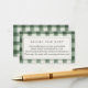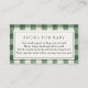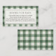 A book request insert card for baby shower. Featuring a green plaid pattern with poem: "ONE SMALL REQUEST, WE HOPE NOT TOO HARD