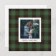 These trendy and rustic holiday cards feature your personal photo in a simple frame with your "Merry Christmas" or other message, on a green and black buffalo plaid pattern background. The back of the card contains your Christmas greeting in modern script.