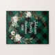 Green Buffalo Plaid Rose Floral Family Christmas Jigsaw Puzzle