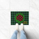 Doormats: Rustic green and black buffalo plaid pattern with Shamrock lucky clover leaf charm for your Christmas festive holidays