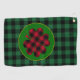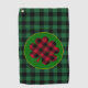 Golf Towel: Rustic green and black buffalo plaid pattern with Shamrock lucky clover leaf charm for your Christmas festive golfers