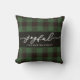 Rustic Green Plaid Holiday Print with Joyful Script and Personalised Family Name Buffalo Plaid Christmas Throw Pillow.