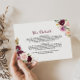 This green burgundy floral wedding details insert card is perfect for a rustic wedding. The design features elegant green, blush, purple, red and burgundy hand-drawn flower bouquets, inspiring natural beauty.