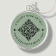 Customisable QR Code keychain, with a sage green background. To generate a new QR code on the design, add your website URL or social media handle in the " personalise this template" feature.