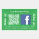 A bright green background. Personalise and add your business name, your own qr code to your Facebook account and a text. White text. With the text x2: Follow us!