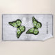 Enjoy your day at the beach or poolside with a Green Butterfly Floral Personalised Beach Towel. Towel design features a pair of vibrant butterflies resting on a white floral vine against a light grey grunge background. Additional gift items available with this design as well as a variety of colours.