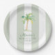 Green Cabana Stripes Palm Beach Club Birthday Paper Plate
