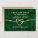 Simple, elegant, gold foil rope heart in combination with boho abstract emerald green background.