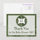 Green Camo Boy Baby Shower Thank You Postcards that features a Green Zebra stripe and Green Camouflage pattern background. There is a white overlay with a Zebra, Camouflage circle with decorative It's a Boy text and Thank You for the Baby Shower Gift! All text is customisable, you can add text, delete text, change font, text colour, move text, etc. Ideal for saying Thank You to your Baby Shower guests. This personalised Baby Shower Postcard card is a great way to say thank you. If you need help customising this product, please contact me through my store and I'll be happy to help! Matching Baby Shower supplies and party favours are also available in our shop.