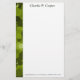 A vertical green camouflage border on the left of this letterhead makes a unique statement. Change the existing upper text to add your own name and the lower text to add your address to personalise your stationary.