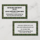 Create your own camouflage business cards using this easy, diy template. It has a green and brown camo border on both sides with a semi-transparent white space in the middle for you to add all your business information. Easily customise using the provided "Personalise It" field or click "Customise It" to move text / change fonts, etc.
