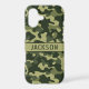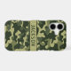 Customise this multi-hued green camouflage iPhone 17 case with your name in a trendy modern CAP font in dark green on light green. It's masculine and perfect for your favourite military, hunting, country or outdoorsman!