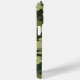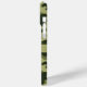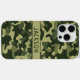 Customize this multi-hued green camouflage iPhone 15 pro case with your name in a trendy modern CAP font in dark green on light green. It's masculine and perfect for your favorite military, hunting, country or outdoorsman!