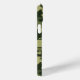 Customize this multi-hued green camouflage iPhone 15 plus case with your name in a trendy modern CAP font in dark green on light green. It's masculine and perfect for your favorite military, hunting, country or outdoorsman!