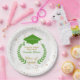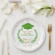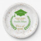 Paper plates for that special high school or college graduation party with personalised text. Features image of a green grad cap and laurel wreath accented with faux gold confetti. See matching napkins and other colour groups also available in this same design
