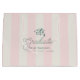 This preppy and coquette graduation gift bag features a green graduation cap on a cream background with light pink stripes. Personalize it for your needs. You can find matching products at my store.