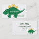 Cute mummy play date card done in white, with a colourful green and yellow dinosaur decorating the front and back of the card. Text in green and white is fully customisable to suit your needs. Great looking mummy card, that's great for arranging play dates, with other moms, and baby sitting co-ops.