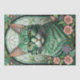 Green Cat and Flowers -Decoupage_ Tissue Paper