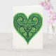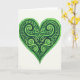 This card features a large, intricate green heart centered on a bright white background, with curling knot-like lines that loop and weave together like two paths meeting and staying close 💚. Deep forest tones slide into lighter lime and chartreuse, giving the heart a layered look that feels lively and full of motion. The interlaced swirls suggest closeness and connection, like a gentle bond that keeps circling back to itself without breaking. Fine marker-like strokes add texture, making the pattern feel intimate and carefully drawn rather than flat. A small St. Patrick’s Day greeting sits near the bottom in a matching green, set neatly so it doesn’t compete with the artwork ☘️. The wide white space around the heart keeps the focus on the detailed curves and the shifting shades inside. The heart’s interior is packed with continuous spirals and interweaving lines, with darker edges and lighter highlights tracing the turns.