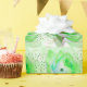 Green rose with a shamrock on its cheek over a green jewel-like background.