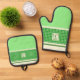 Green Check Monogram Oven Mitt & Pot Holder Set
