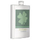 Green checks fill up the traditional shamrock form on this flask. The shamrock image is placed on a darker blue green background. The bottom holds your own personalisation in gold Old English text on a white background. Underneath is additional customisable text in matching blue green. Perfect for anyone who is Irish, or just wants to celebrate the Celtic heritage.