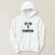 Cheerleading T-shirts, mugs, hoodies, cards, tote bags, magnets, cheering stickers, keychains, and more with a cheerleader in a green uniform and green pom poms.