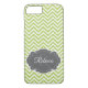 Protect your iPhone with a Green Chevron Personalised Barely There Case. Case design features a green chevron background and ornate grey tag to personalise with your name and monogram. Additional items available with this design as well. Please contact me directly for assistance with personalisation.