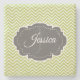 Protect your table and counter tops with a Green Chevron Personalised Coaster. Coaster design features a green chevron background and an ornate grey tag to personalise with your name and monogram. Additional items available with this design as well. Please contact me directly for assistance with personalisation.