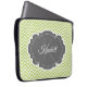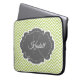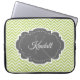 Protect your laptop with a Green Chevron Personalized Laptop Sleeve. Laptop sleeve design features a green chevron background and ornate gray tag to personalize with your name and monogram. Additional items available with this design as well. Please contact me directly for assistance with personalization.