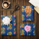 A green Chinese dragon with an orange koi fish with lotus flowers and cherry blossoms against a backdrop of dark blue.