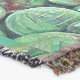 A quality printed throw has its advantages. This is a much finer weave throw than its loopier cousins, and though lighter, it is worth the investment for custom room accessorizing. The back is much prettier than the typical brown, and the fringe on the long sides very vivid, the selvage nicely done. Before photographing, I washed the throw in cold water, delicate, with a thicker woven throw the same size. On tumble dry low, this throw was dry in half the time as the other. This is a very practical quality if you use throws for furniture covers or to wrap up in frequently. The sleekness of the fabric makes it a great layer for accenting or protecting without the feeling of sitting on too much stuff. Perfect for napping or when you feel a light chill coming on. The color printing is beautiful and on this fabric, matched the design and color of my Photoshop image. This is an advantage for blending room fabrics and colors. The fringe on the short sides prints the colors from the design image and therefore varies from the side fringe. I streaked a white fractal line through the plaid pattern to give the illusion of weaving. This printed as crisp as an illusory thread, and put some white in the short side fringe, showing another advantage of print vs loomed- for artistic purposes, line lines, detail, and color integrity can be planned and preserved. My loomed throws have color limitations and more of a needlepoint texture. Print throws reproduce an exact image. The throw felt a little stiff straight out of the package, but this went away in the first delicate wash. Of course I searched the wash water for ink or bleeding and there was none.