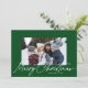 Green Christmas Calligraphy Script Simple 3 Photo Holiday Card features a modern calligraphy greeting over a horizontal photo. Two additional photos on the back along with your holiday message.