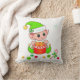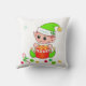 Modern cute green Christmas elf with gift box, Christmas balls, candy cane and star on white background Christmas Pillow. Name can be personalised.