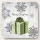 Protect your table and counter tops this holiday season with a Green Christmas Gift Plastic Coaster. Coaster design features a vibrant wrapped Christmas gift adorned with grey and white snowflakes against a grey grunge background. Additional gift and holiday items available with this design as well.