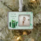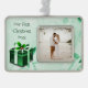 Celebrate love and holiday cheer with this Green Christmas Gift Framed Photo Ornament, featuring a festive ribbon and bow adorned with holly berries and sparkling glitter vines. Your favourite photo is beautifully highlighted with festive typography, creating a timeless holiday photo keepsake perfect for commemorating our first Christmas. A charming addition to your Christmas decor, this ornament captures the joy and warmth of the season.