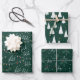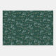 This is a set of three different wrapping papers in classic winter pine green with patterns of rustic winter trees, Christmas string lights, holly and joy.