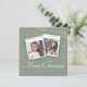 A very stylish and modern Christmas Holiday greeting card with two of your own photos on the front hanging in nice white picture frames on geometric golden taped lines. With nice bright golden stars on a green background.