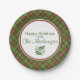 Green Christmas Plaid Pattern Personalised Paper Plate