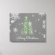 Make your walls festive this holiday season with a Green Christmas Tree and Snowflakes Stretched Canvas Print. Canvas print design features a vibrant artistic Christmas tree with falling snowflakes and a dark grey background. Additional gift and holiday items available with this design as well.