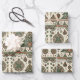 The symmetrical and balanced arrangement of the repeating trees and ornaments creates a seamless and cohesive design perfect for wrapping gifts. The combination of green trees, earth-toned ornaments, and the soft beige or cream background evokes a warm and inviting atmosphere, capturing the festive spirit of Christmas and the cosy essence of winter. This wrapping paper appeals to everyone, from those who appreciate traditional Christmas decor to those drawn to folk art and Nordic-inspired design, adding a touch of handcrafted charm and festive warmth to any present.