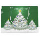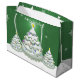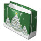 Bag your Christmas gifts with this whimsical and festive Green Christmas Tree Gift Bag. Gift bag design features a trio of snow covered decorated Christmas Trees against a green background and falling snowflakes. Additional gift and holiday items available with this design as well.