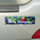 Green Christmas tree, blue decorative lights and red ornament ball covered with fresh snow. Cheerful and joyful mood. Merry Christmas and Happy New Year. Prints and gifts for anyone for fun and good mood. Bumper sticker. You can change or delete the template text Merry Christmas.
