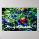 Green Christmas tree, blue decorative lights and red ornament ball covered with fresh snow. Cheerful and joyful mood. Merry Christmas and Happy New Year. Prints and gifts for anyone for fun and good mood. You can change or delete the template text Merry Christmas.